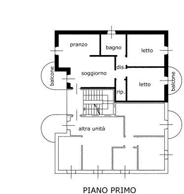 L'unità immobiliare è posta al piano primo in edificio condominiale di recente edificazione composto da soggiorno - cucina con affaccio su terrazzo, disimpegno notte, ripostiglio, bagno, camera da letto con balcone, altra