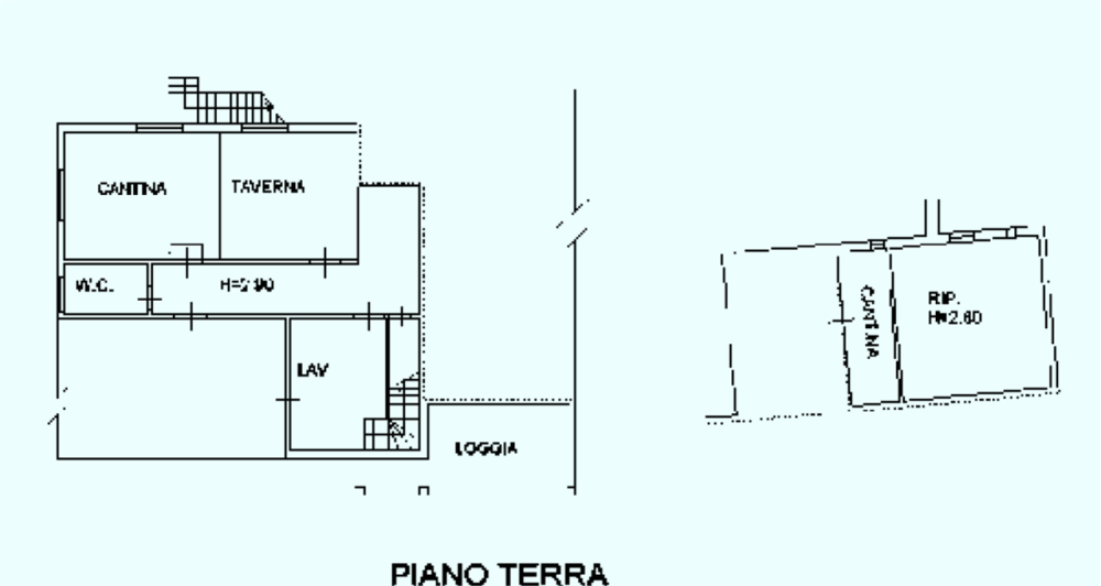 Trattasi di appartamento posto al piano terra con cantina, ripostiglio, lavanderia, taverna e al piano primo troviamo cucina, w.c, veranda e loggia.