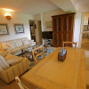 Allinterno, lappartamento si distingue per gli spazi ampi e luminosi. Il soggiorno è accogliente e arredato con due comodi divani, tavolo da pranzo e credenza, ideale per ospitare momenti conviviali o trascorrere ore di relax. La cucina, in stile americano, è completamente accessoriata con forno, lavastoviglie, microonde e macchina del caffè espresso: un ambiente pratico e moderno che rende la casa perfetta anche per soggiorni prolungati.