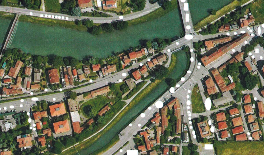 Appartamento ai piani terra, primo e secondo situato a Padova (PD) in via Adriatica, composto al piano terra da un disimpegno e vano cantina; al piano primo da un soggiorno-cucina- corridoio; al piano secondo da un disimpegno, un bagno finestrato ed una camera da letto.