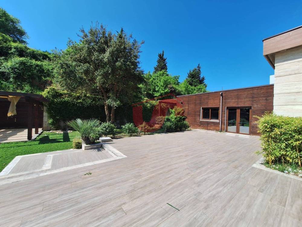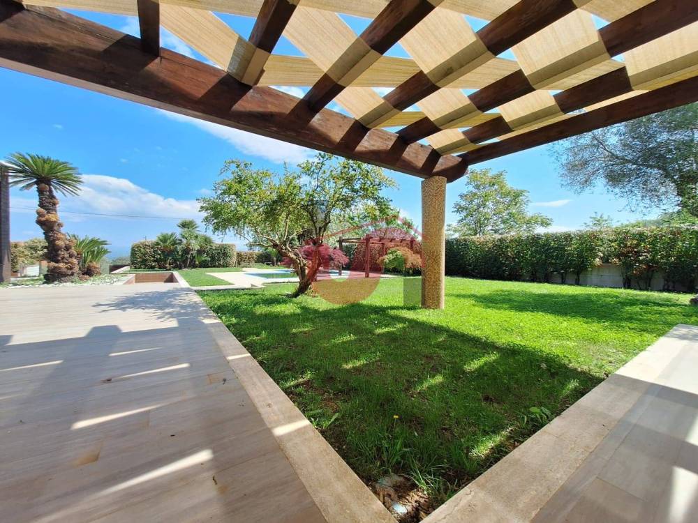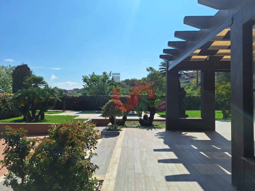 La villa si sviluppa su un lotto complessivo di circa 3.500mq in parte destinato a terrazzo scoperto e giardino privato curato e ben tenuto, in parte ad area di manovra. L'area esterna, che offre uno spazio verde dove poter trascorrere piacevoli momenti all'aria aperta, ospita una piscina, tre porticati, un corpo di fabbrica adibito a locale tecnico, un altro corpo di fabbrica adibito a dependance costituito da ingresso, soggiorno, bagno e sala tv.