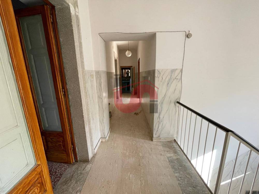 La casa è disposta su due livelli di cui uno al piano terraneo e l'altro al piano seminterrato e dispone di 8 stanze complessivamente, allo stato utilizzate in forma promiscua ; un ingresso, 3 camere da letto, un salone un bagno, un ripostiglio al piano terraneo più ulteriore bagno, 2 cantine contigue, un tinello, una sala da pranzo e 2 cucine al piano seminterrato.