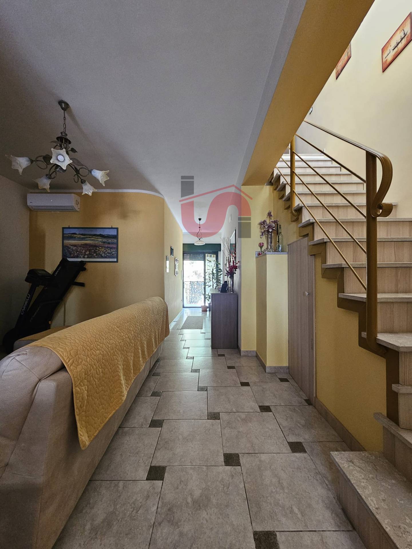 Al piano terra ampio deposito/garage dove è possibile parcheggiare tre auto, i piani 2° e 3° del fabbricato sono raggiungibili attraverso scala interna e così distribuiti: Il primo livello è composto da un ingresso in soggiorno con camino, cucina abitabile con terrazzo panoramico, uno studio e un bagno. Al piano superiore semimansardato troviamo un disimpegno, due camere da letto e bagno.