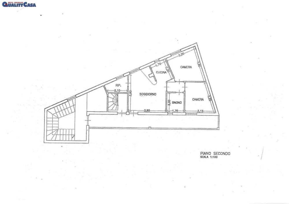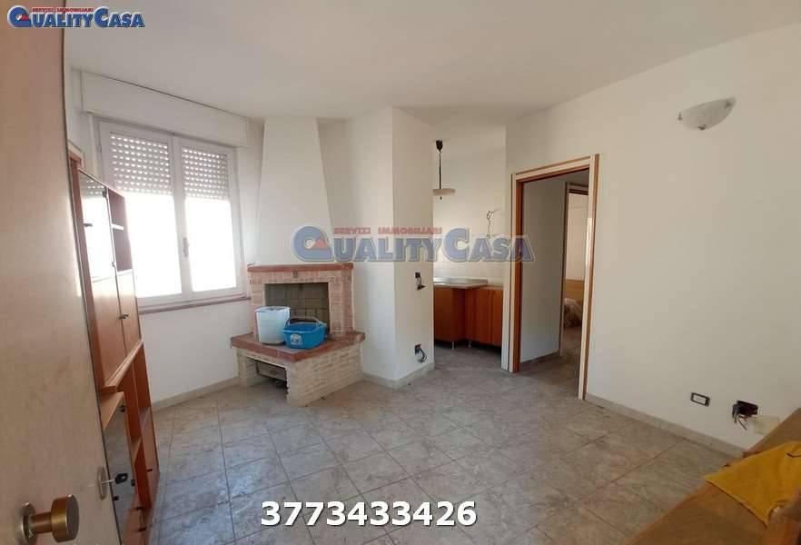 - Appartamento piano secondo: ingresso, soggiorno con camino, cucinino, camera, cameretta, bagno con doccia, ripostiglio, balcone e posto auto esterno;
