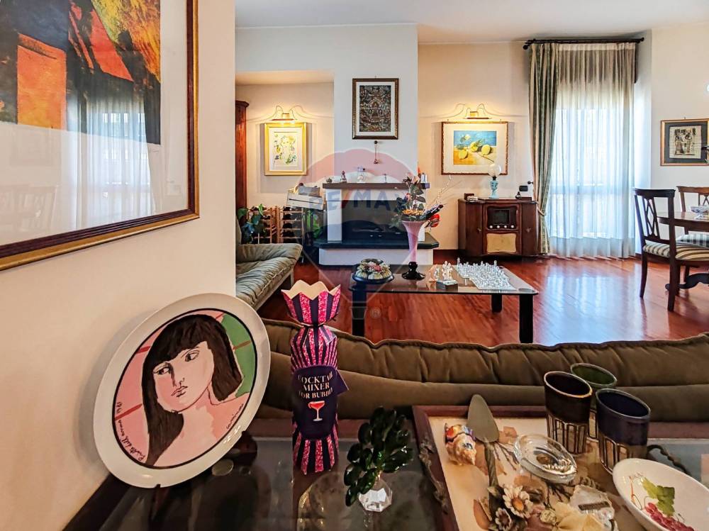 L'appartamento è composto da salone triplo con camino, 3 camere da letto, stanza studio, cucina abitabile con tinello, tre bagni e funzionali ripostigli.