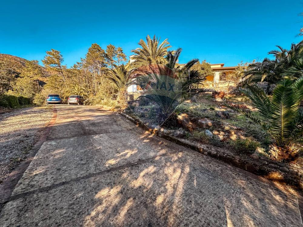 La sicurezza è garantita da un sistema di allarme e la proprietà è completamente recintata. Il terreno di 5.000 m² offre spazi verdi dove rilassarsi e, con un po' di fortuna, si può ammirare una cascata sullo sfondo. Il box doppio e diversi posti auto interni assicurano comodità per te e i tuoi ospiti. Non perdere l'occasione di visitare questa villa unica nel suo genere!