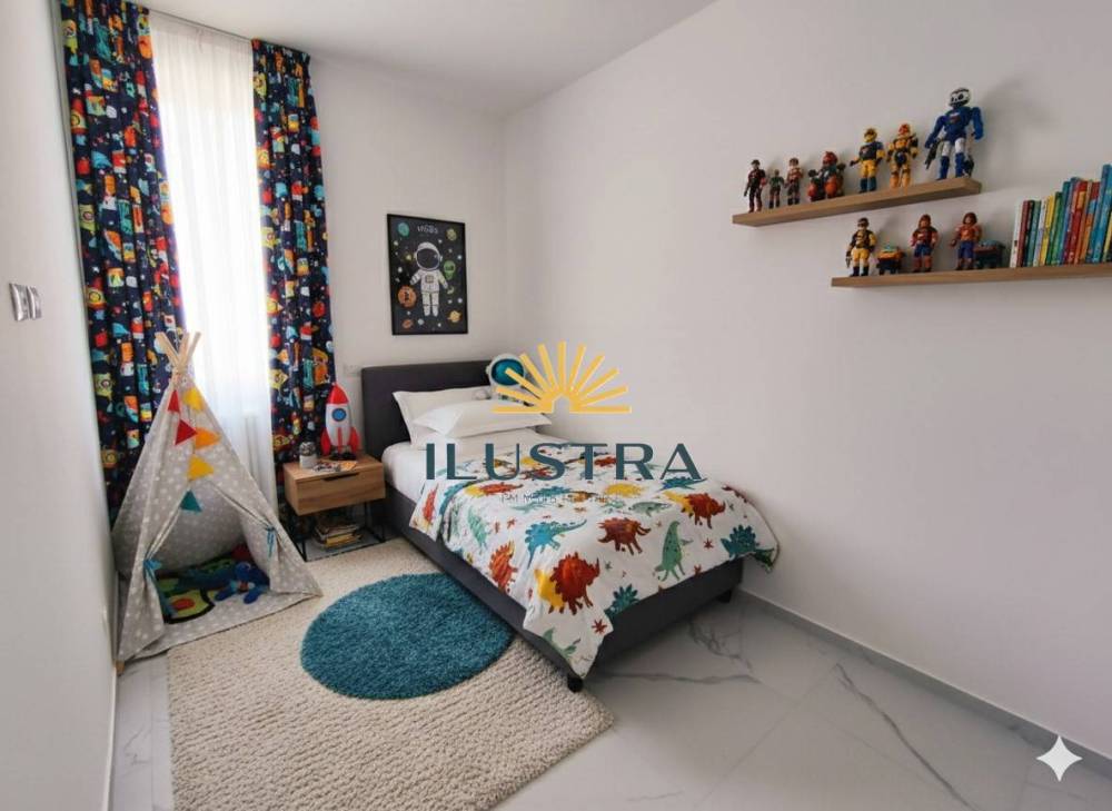 L'unità immobiliare è posta al piano terra di circa 75mq, con corte e giardino condominiali, ingresso su disimpegno, ampio soggiorno con angolo cottura, camera matrimoniale con cabina armadio , camera singola, bagno finestrato con doccia, secondo bagno nella zona giorno ad areazione forzata.
