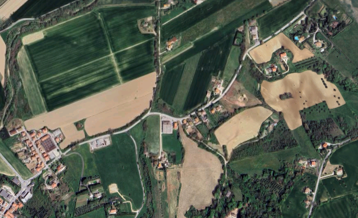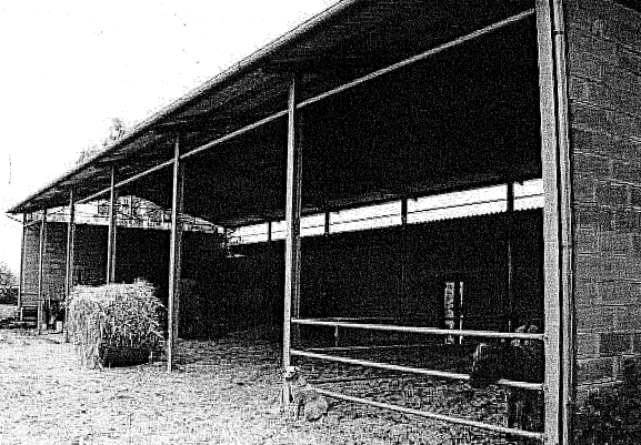 edificio adibito a stalla (ex fienile) di mq 392,in fine dei terreni di una superficie di 9025 mq.