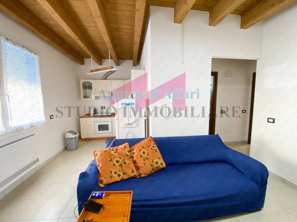 L'immobile completamente arredato, con travi in legno a vista, si compone di ingresso/soggiorno/ cucina con piano cottura ad induzione, disimpegno, camera da letto matrimoniale, una singola e bagno.