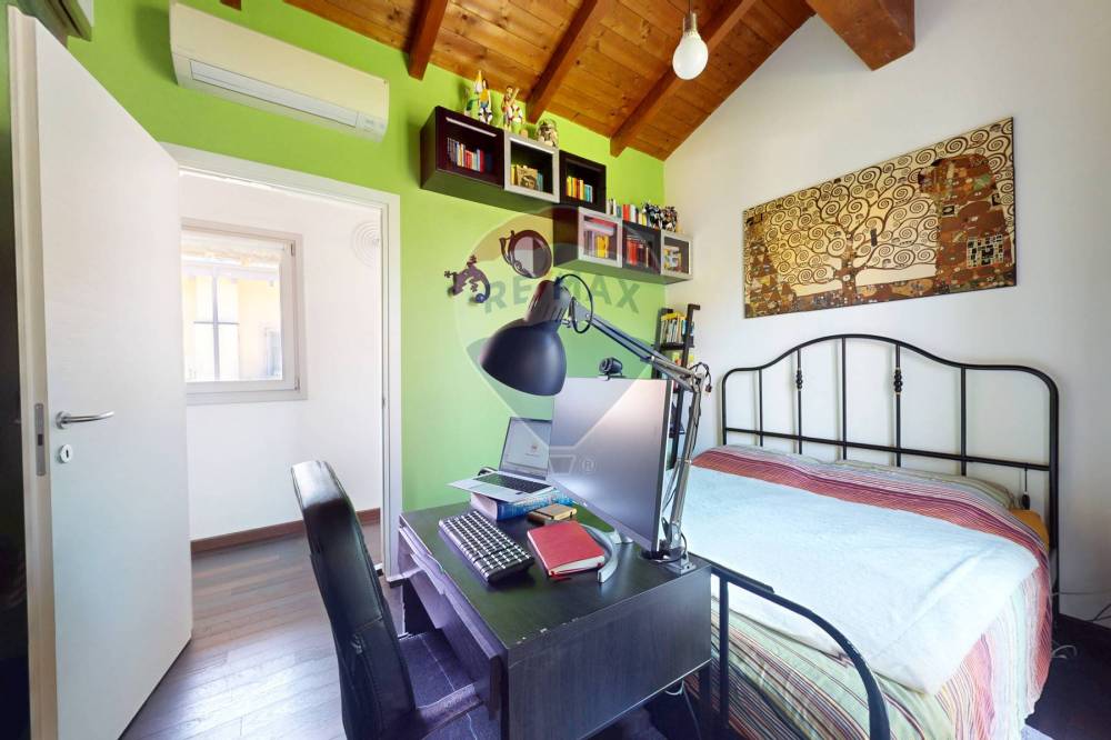 dalla comoda scala in muratura si arriva al piano superiore, dove un lungo corridoio finestrato disimpegna la camera matrimoniale, la camera singola, con balcone e un secondo bagno con vasca.