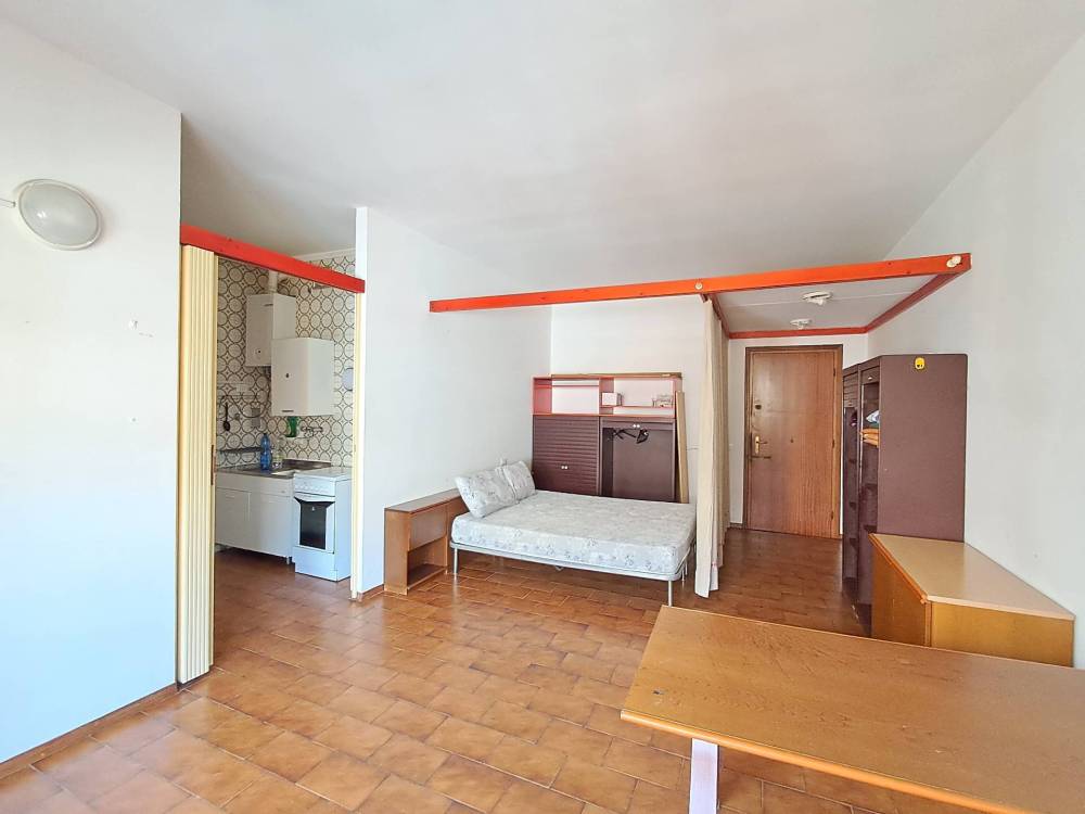 ingresso, soggiorno con balcone, zona camera letto, cucinotto, bagno finestrato con vasca doccia.