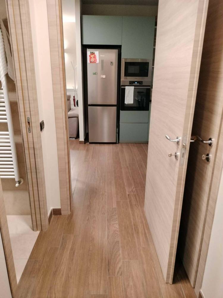 L'immobile di recentissima costruzione risulta essere privo di alcuna barriera architettonica, ed uscendo nel giardino di proprietà esclusiva lo rende appetibile anche per le persone con poca motricità. La zona giorno è composta da ingresso sulla sala con l'angolo cucina, nascosto, angolare e su misura ed ha l'uscita diretta sul verde privato. Piccolo disimpegno tra le due zone con la lavanderia che funge anche da ripostiglio, ampio, la camera da letto con una capiente cabina armadi ed il bagno, finestrato, con box doccia in cristallo. Cantina e box auto al piano interrato. I serramenti dell'alloggio sono in PVC con vetrocamera completi di zanzariere e sono presenti inoltre anche i climatizzatori.