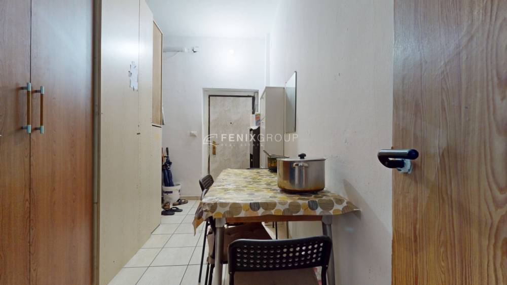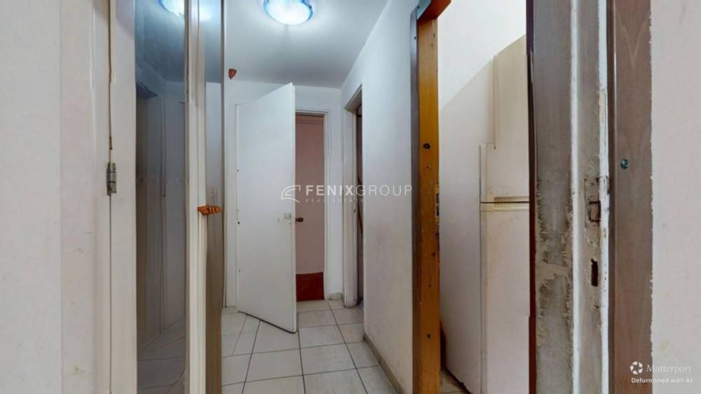 L’ingresso si apre su una prima stanza adibita a soggiorno, seguita da un disimpegno che conduce agli altri ambienti della casa: una cucina separata, il bagno finestrato e, in fondo, la camera da letto. Tutti i locali sono dotati di finestre, rendendo l’abitazione luminosa e ben arieggiata durante l’arco della giornata.