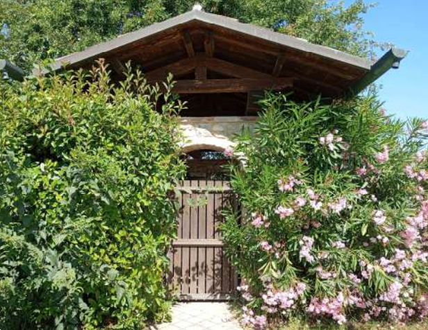 All'esterno, in una struttura separata dal corpo principale, sono presenti due edifici adibiti a ripostiglio (suddivisi in due locali), due vani cantina e un'autorimessa di circa 32 mq. Completa la proprietà un terreno di 3.535 mq.