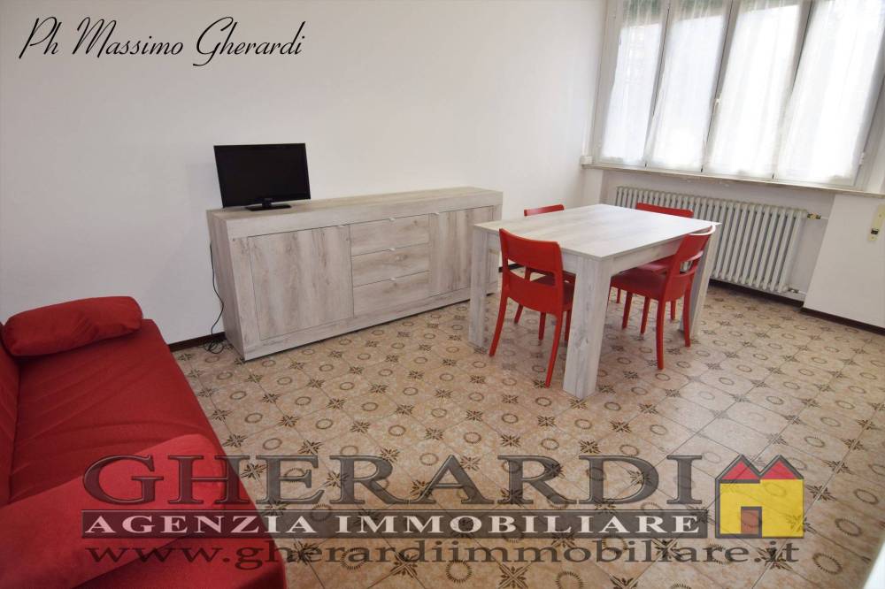 In zona verde e universitaria, in via Fulvio Testi, traversa di viale XXV Aprile, si affitta libero appartamento climatizzato, sito al piano rialzato, completamente arredato a NUOVO, per 2 o 3 STUDENTESSE o STUDENTI DELL'UNIVERSITA', composto da: ingresso, cucinotto finestrato, soggiorno, camera da letto doppia, camera da letto singola, bagno finestrato con doccia e spaziosa cantina finestrata. Posto auto in corte comune e deposito cicli comune. Infissi in PVC con vetrocamera.