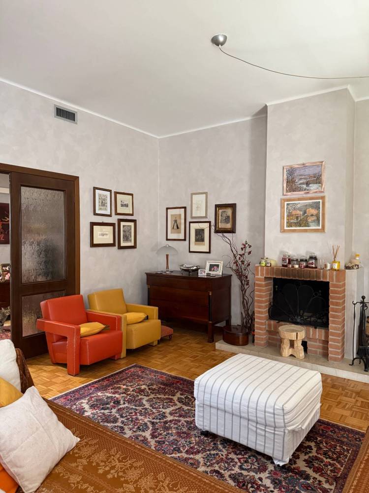 un salone di rappresentanza con camino, impreziosito da parquet che conferisce calore e raffinatezza agli ambienti, una cucina abitabile che, grazie alle ampie finestre, gode di luce naturale per tutto l'arco della giornata.