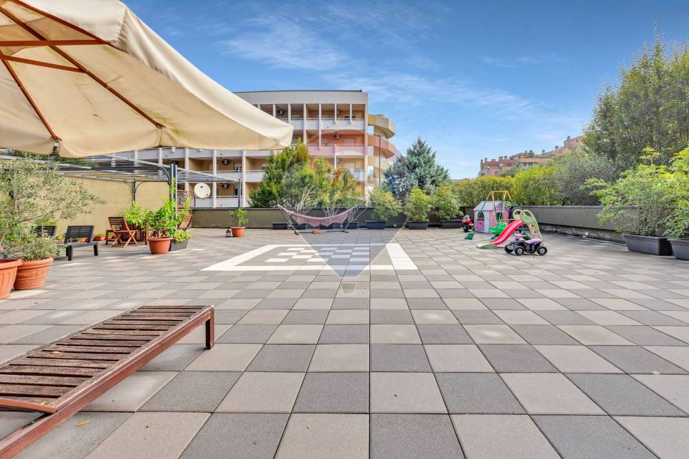 E poi cè lei, la mia perla: un terrazzo di quasi 300 mq, un vero giardino sospeso tra cielo e città. Perfetto per giocare, per rilassarsi, per vivere ogni stagione allaria aperta.