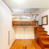 Al primo piano troviamo un accogliente ingresso che introduce alla zona giorno, composta da un elegante soggiorno, un ampio salone con cucina a vista e un pratico bagno di servizio.