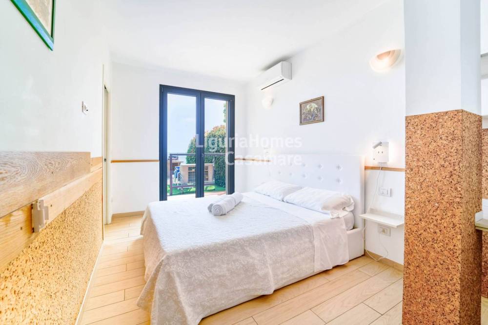 A breve distanza dalle spiagge e dal centro di Santo Stefano al Mare, vendita in esclusiva di luminoso appartamento con grazioso giardino e favolosa vista mare all'interno di un piccolo complesso residenziale dotato di piscina, area spa e posto auto privato.