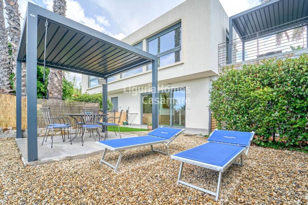 A breve distanza dalle spiagge e dal centro di Santo Stefano al Mare, vendita in esclusiva di luminoso appartamento con grazioso giardino e favolosa vista mare all'interno di un piccolo complesso residenziale dotato di piscina, area spa e posto auto privato.