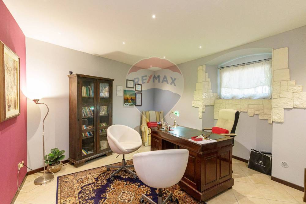 Attualmente ospita uno studio medico, articolato in due ampie sale adibite a reception e sala dattesa, due ambienti destinati a studio privato, un servizio completo, con antibagno, doppia finestra e un ampio ripostiglio, facilmente trasformabile in un secondo servizio o in un pratico cucinino.