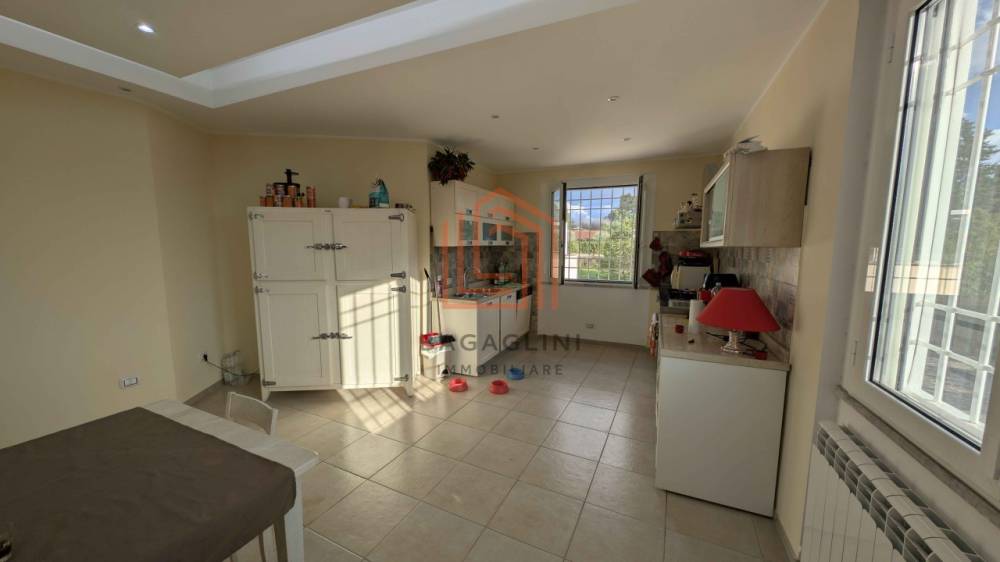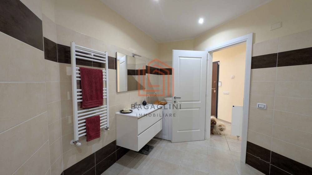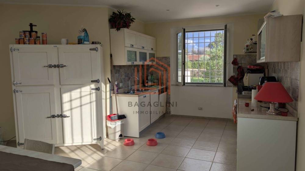 Una seconda zona composta da un bilocale autonomo con soggiorno e cucina a vista, camera matrimoniale e bagno, perfetto per il personale di servizio o per accogliere amici e familiari con la massima privacy.