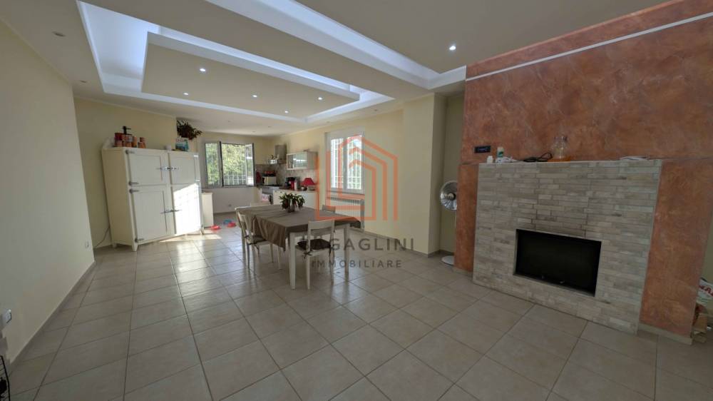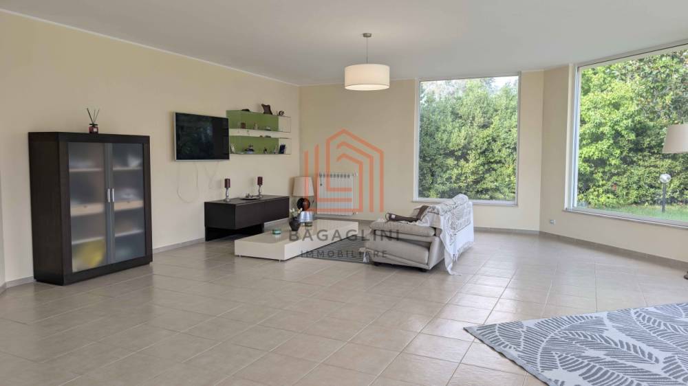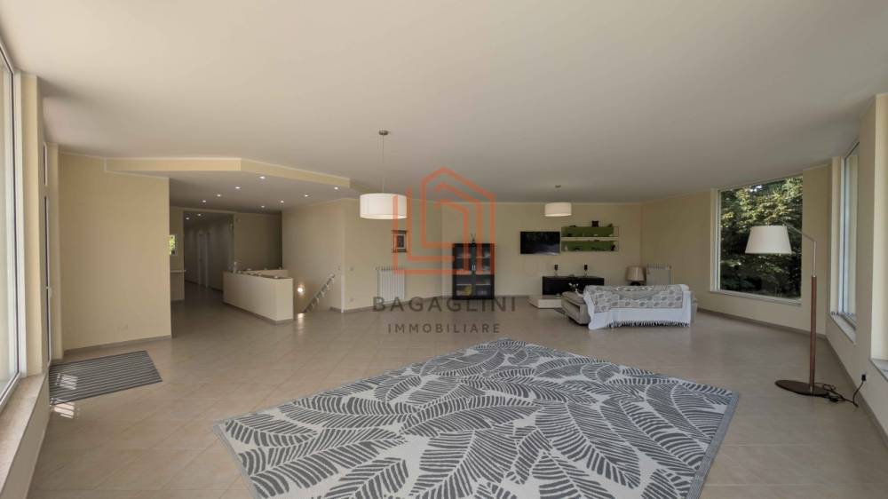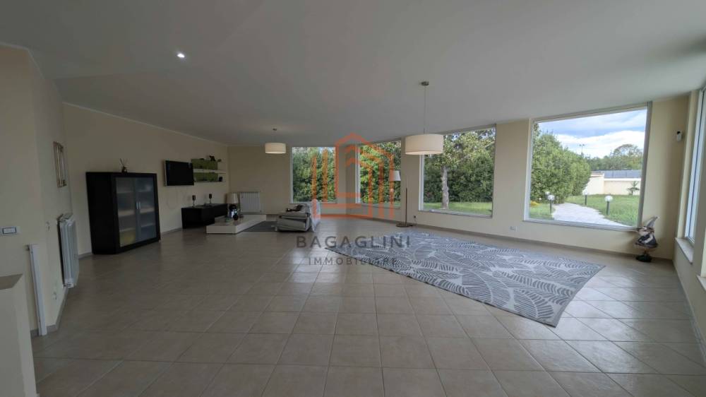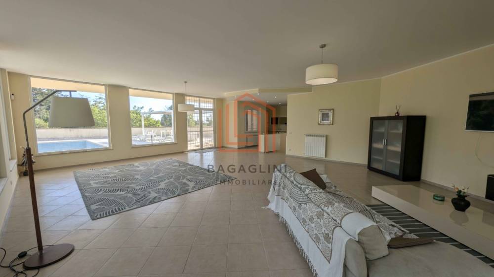 Al piano principale si apre una zona giorno ampia e luminosa composta da doppio salone, cucina abitabile, quattro camere da letto e tre bagni, tutti rifiniti con materiali di qualità. Gli ambienti godono di ottima esposizione e accesso diretto agli spazi esterni.