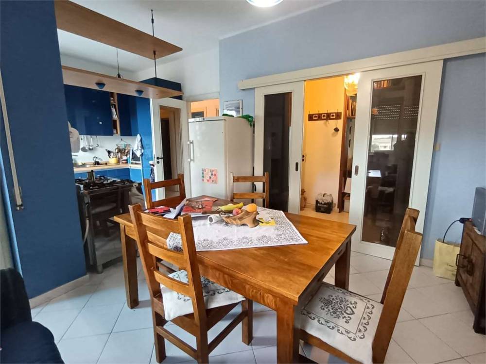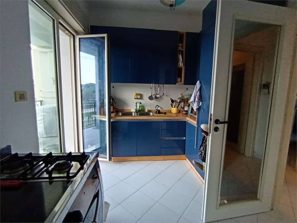 Il pentavani, al terzo piano con ascensore, haingresso, salone aperto con finestra e accesso al balcone grande, cucina con annessa sala da pranzo (con finestra e due accessi al secondo balcone), corridoio, prima camera con accesso al balcone grande, bagno principale con finestra e vasca, secondo bagno con doccia e accesso al secondo balcone, camera matrimoniale con accesso al balcone grande, camera singola con finestra (attualmente adibita a studio), ripostiglio, garage di 23 mq (con soppalco, luce e acqua allacciate, sistema di ricarica auto, grazie ai pannelli fotovoltaici), due posti auto scoperti recintati e assegnati.