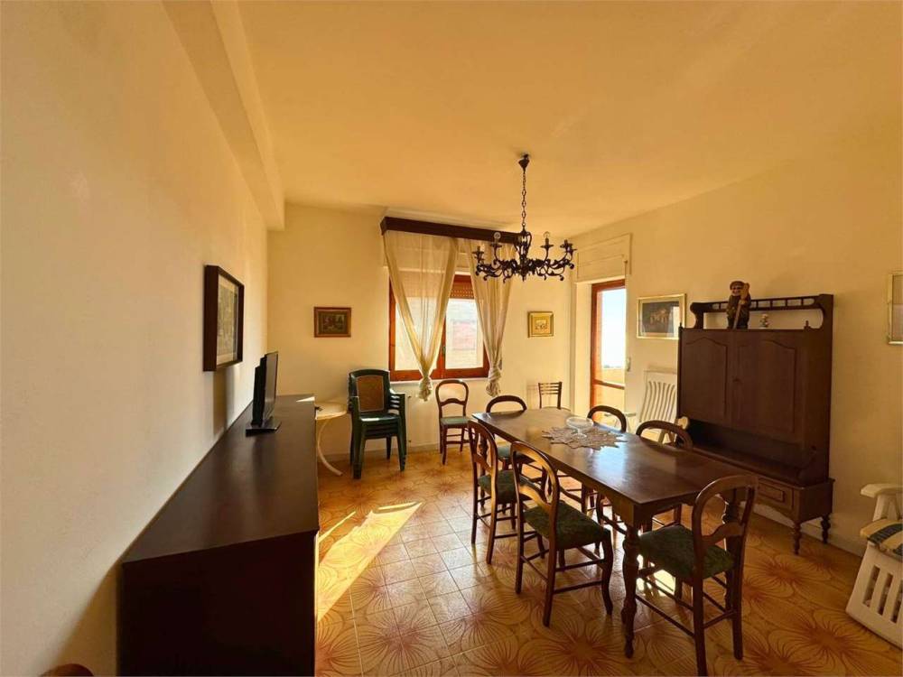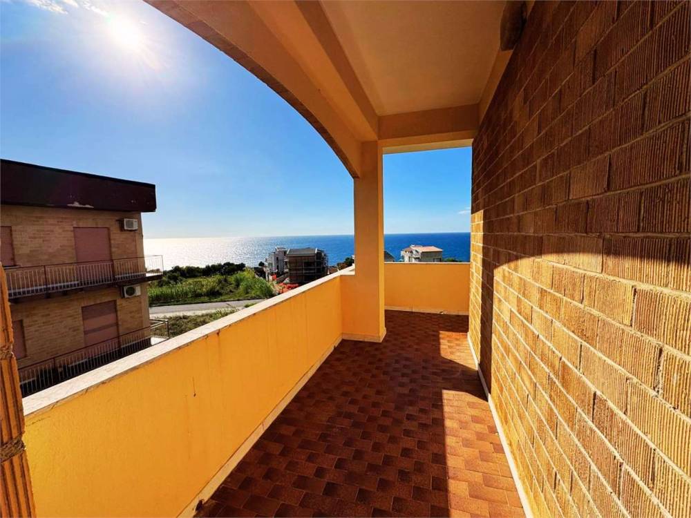 L'abitazione è composta da un grande salone, cucina abitabile, tre camere da letto, due bagni, balconi e un magnifico terrazzo con splendida vista sul mare e sul paesaggio circostante. Completa la proprietà un comodo posto auto.