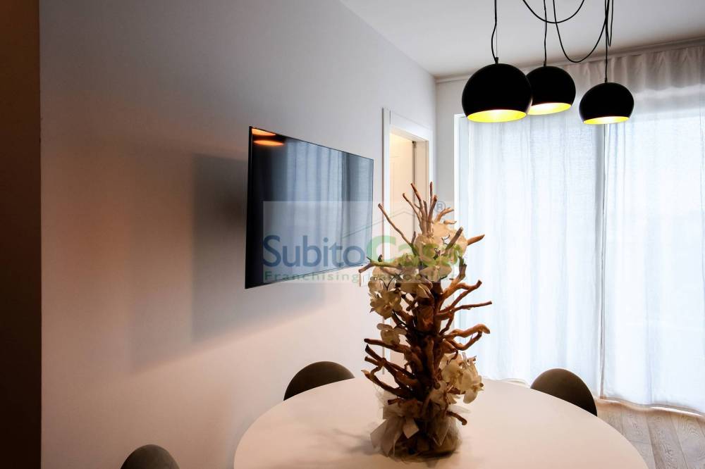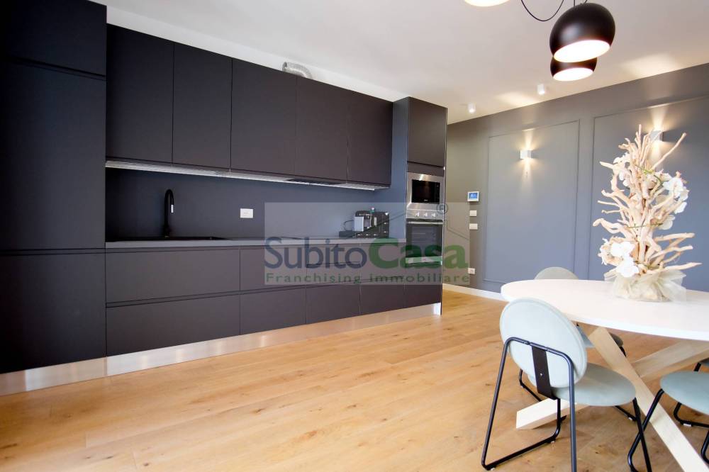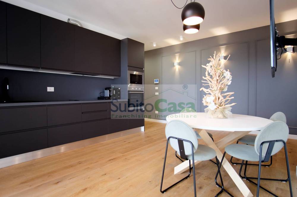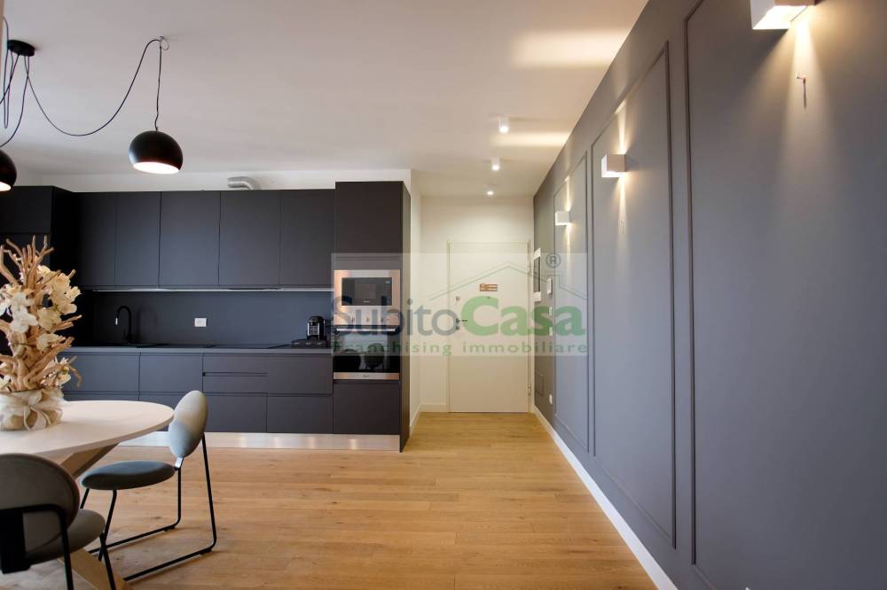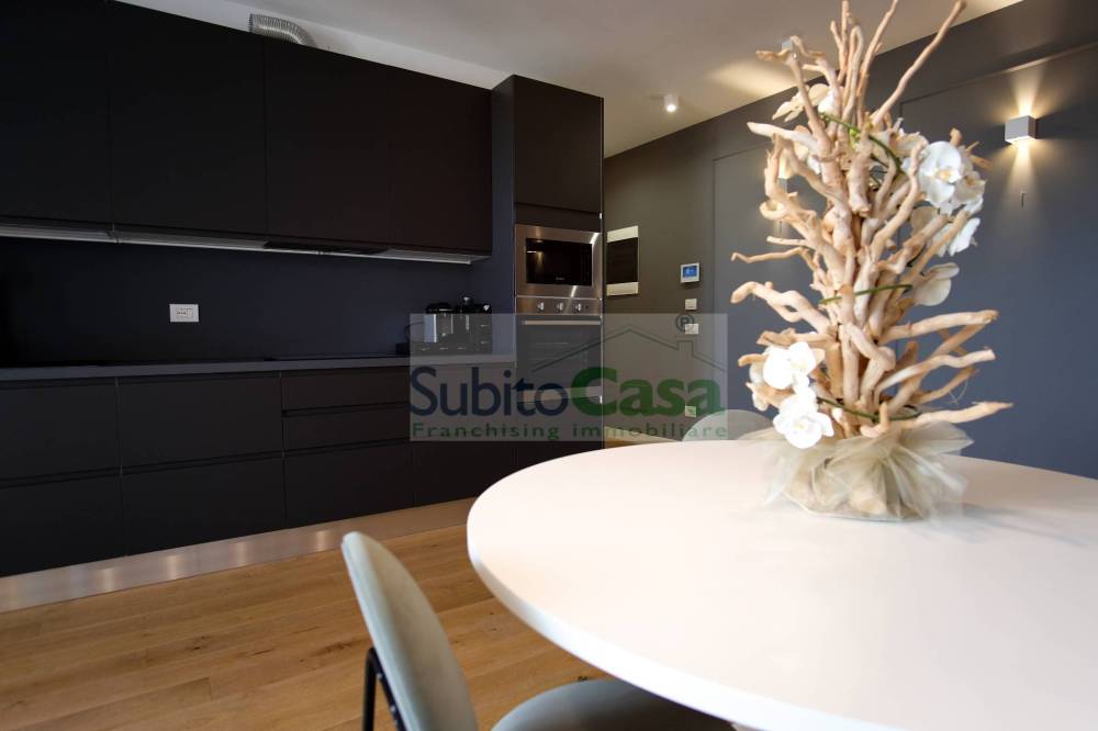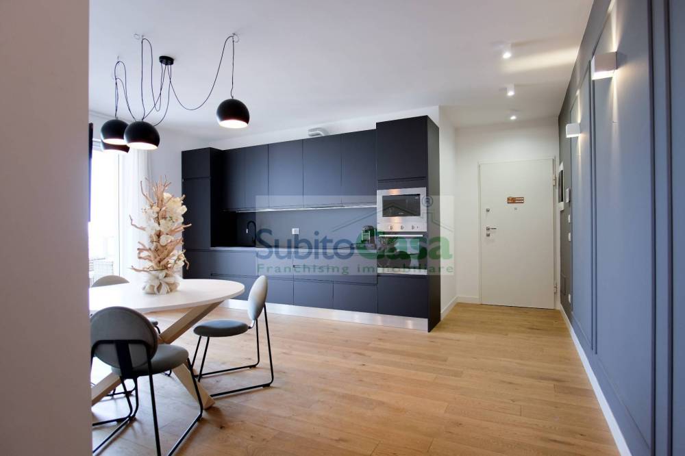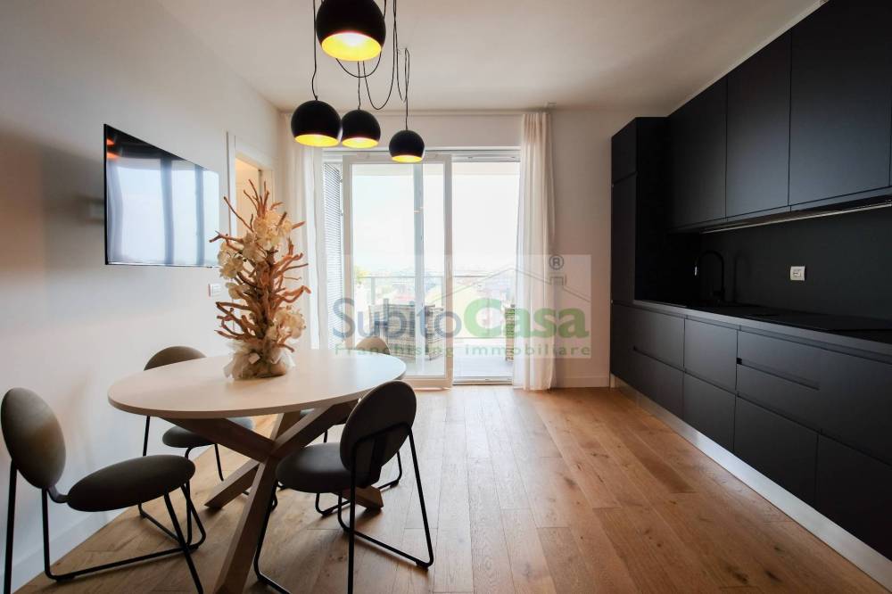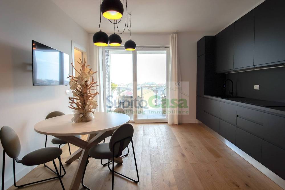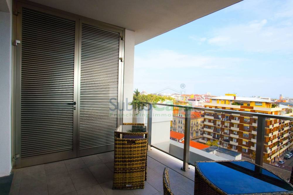 Situato all8° piano di un condominio moderno ed elegante, dotato di pannelli fotovoltaici, doppio ascensore ed aree verdi, lappartamento si apre su una luminosa zona giorno open-space con area living, zona pranzo e cucina a vista, dalla quale si accede ad un ampio terrazzo con splendida vista mare.
