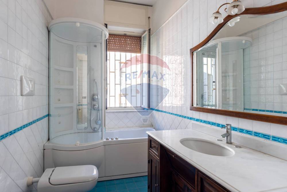 Lo stesso risulta composto da un ampio ingresso con finestratura diretta, fornito di eleganti armadiature a muro in legno massello; tramite un largo corridoio si accede alla zona giorno, composta da un salone doppio, servito tanto dal balcone che da una finestra, e da un comodo servizio con finestra, preceduto da un grande vano antibagno, nel quale sono state sapientemente collocate altre armadiature ad incasso, sempre in legno massello.