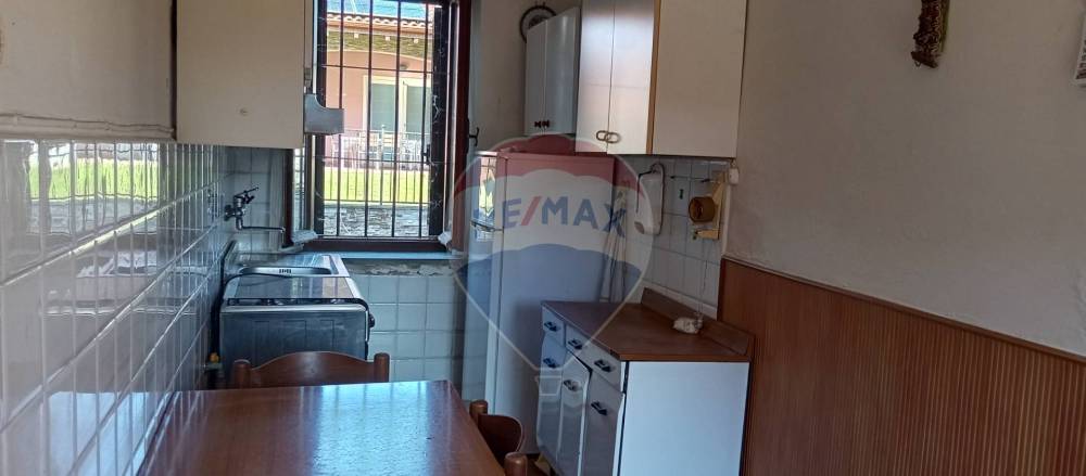 Al piano terreno troviamo un disimpegno, il locale caldaia, un soggiorno, un tinello e un cucinotto. Un ampio locale non collegato alle altre stanze è allo stato grezzo e utilizzato come cantina.