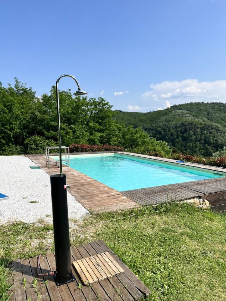 IA04012 - COLLINE DI PESCIA, SPLENDIDA VISTA SULLA PIANA - a pochi passi dal pittoresco paesino di Collodi, famoso per la Villa dedicata a Pinocchio e a breve distanza da Lucca, proponiamo in vendita un complesso colonico composto da tre unità abitative, due piscine (una di acqua salata e una in cloro, entrambe fuori terra) e un terreno di oltre 8.000 mq con oliveto in produzione. Pannelli solari per la produzione di acqua calda per tutte le abitazioni. Le soluzioni abitative hanno accesso indipendente e abitabili da subito, in ottimo stato di manutenzione e attualmente utilizzate per affitto turistico, con una resa annuale eccellente. Si prestano perfettamente anche a un grande nucleo familiare o a un gruppo di amici che desiderano vivere insieme e godere dei meravigliosi paesaggi della Toscana. Il complesso si trova sulla cima di una collina, offrendo una vista mozzafiato sulla vallata circostante. Per raggiungerlo, ci sono due strade: una più articolata un pò stretta ma panoramica di circa 4km, e una più scorrevole. A breve distanza dalla cittadina di Pescia, dove si trovano negozi, ospedale, farmacie, chiese, stazione ferroviaria e supermercati. Descrizione delle unità: Casa Stella (circa 107 mq): Piano terra: ingresso, soggiorno con angolo cottura, ripostiglio e accesso al piacevole portico con forno (ideale per pranzi e cene in compagnia). Primo piano: due camere e un bagno. Casa Cielo (circa 153 mq): Piano terra: ingresso in ampio soggiorno, cucina abitabile, disimpegno, zona pranzo, dispensa, bagno e cantina. Primo piano: disimpegno notte, due ampie camere, di cui una con vano ideale per cabina armadio, e un bagno. Entrambe le unità sono disposte in un unico corpo. Casa Sole (circa 104 mq): Piano terra: ingresso in ampio vano con cucina a vista, soggiorno e ripostiglio. Primo piano: camera matrimoniale, cameretta, studio, ripostiglio e bagno. Garage di circa 30mq Caratteristiche comuni: le unità presentano le caratteristiche tipiche delle case toscane, quali: pavimenti in cotto, scale in pietra, mandolate, travi a vista e muri in pietra e mattoncini. Richiesta € 490.000 trattabili. NB. Per motivi di privacy l'indirizzo è approssimativo.