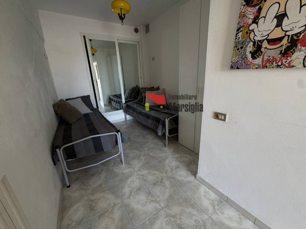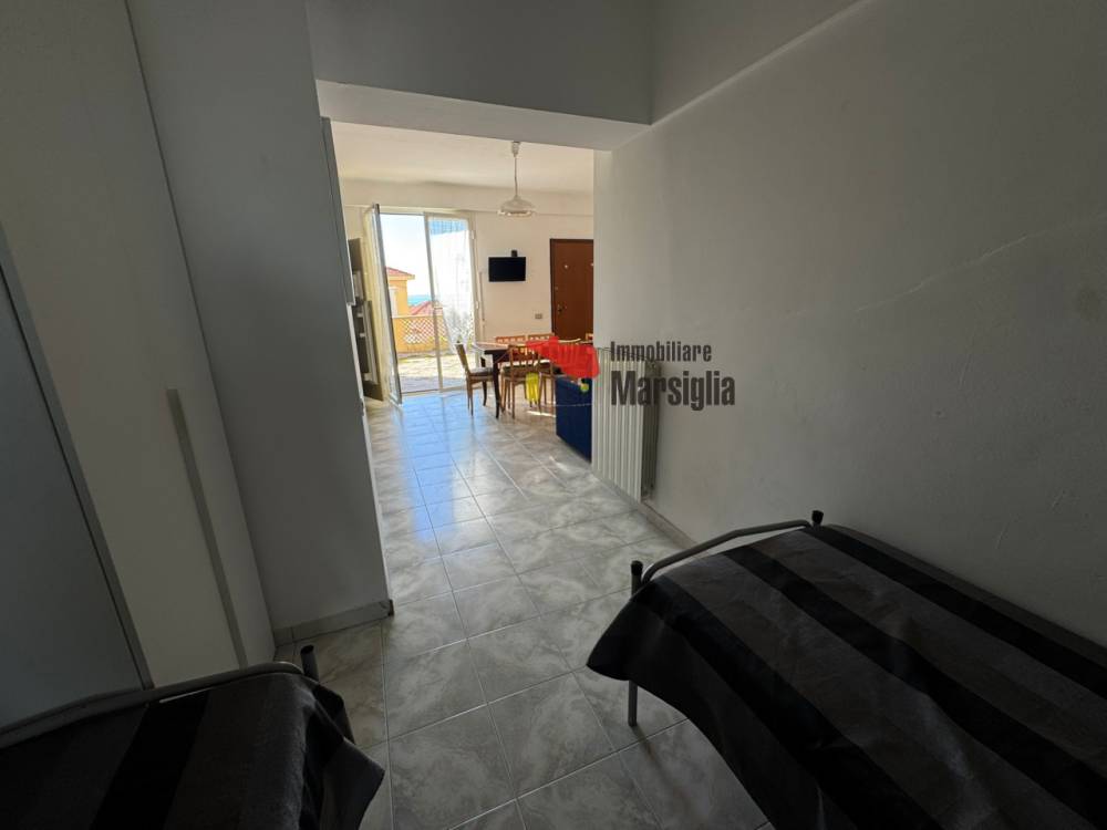 BILOCALE CON TERRAZZO In Via Padre Semeria, in posizone tranquilla e vicina ai servizi ed alle spiagge, vendiamo in piccolo condominio bilocale con terrazzo e ingresso indipendente. L'appartamento è composto da ingresso su soggiorno con cucina a vista, piccolo ripostiglio, camera da letto matrimoniale e bagno. Ampio terrazzo con esposizione a Sud. Il riscaldamento è autonomo e le spese condominiali sono contenute, infatti ammontano a circa € 600,00 l'anno. Soleggiato. Ottimo come seconda casa o da mettere a reddito. Possibilità di acquistare l'alloggio adiacente al prezzo di € 159.000,00 (RIF. B05)