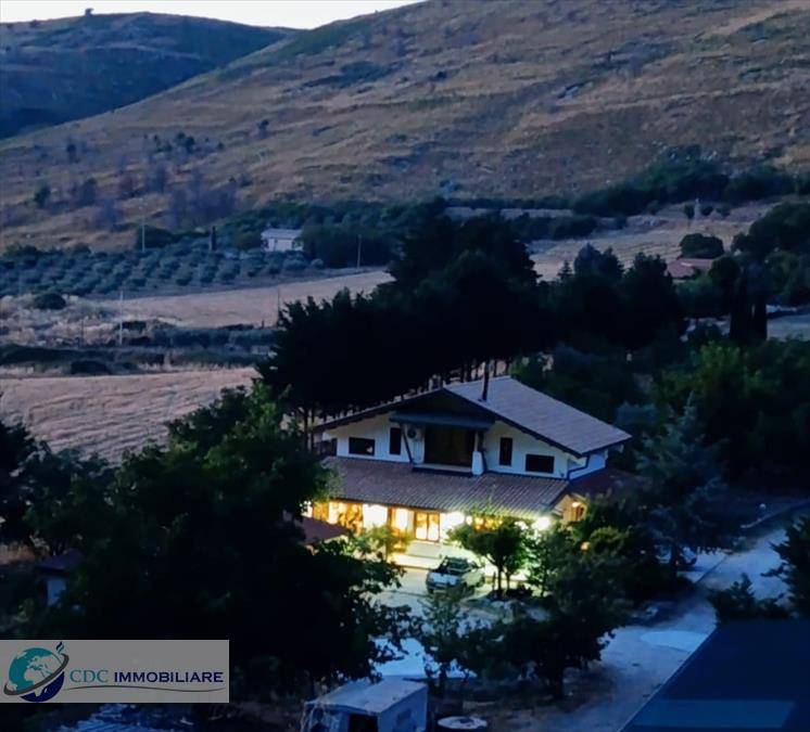 CDC IMMOBILIARE Propone, In Santo Stefano Quisquina (AG) C.da Margimuto a pochi passi stabilimento acqua Vera a pochi passi da Agriturismo Serra Moneta incantevole Villa di mq 243 composta da piano terra e piano uno immersa nel verde strada privata con terreno adiacente di mq 16.000 la villa di recente costruzione dotata di tutti i confort rifiniture con travi in legno e parquet in legno dalla zona giorno alla zona notte la confortevole veranda con camino che riscalda tutta la villa dotata di fancoil e clima, bellissimo il gazebo esterno dotato di cucina e zona forno, acqua con riserva idrica esterna e pozzo sempre pieno, possibilità di costruire e ampliare esternamente alla villa complessivi mq 800 per nuove costruzioni attività di maneggio, ristorante, ect
