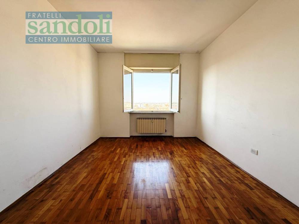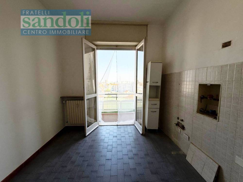 L'immobile è ubicato all'ottavo e ultimo piano ed è molto luminoso, composto da ingresso ampio cucina abitabile, soggiorno, camera da letto e bagno con vasca . Il riscaldamento è centralizzato ma ci sono i contabilizzatori che permettono la riduzione del consumo del riscaldamento. A corredo due grandi balconi e cantina.