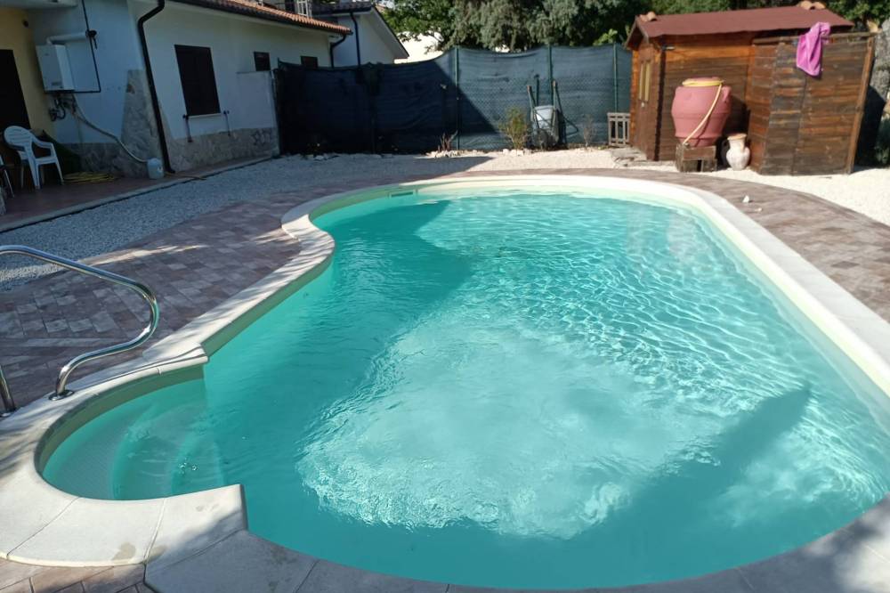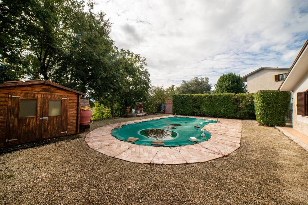 La peculiarità della villa è la piscina ovale unica nella zona. Questo particolare spazio esterno ha un ruolo sostanziale, soprattutto nelle giornate estive, dove trascorrere momenti di convivialità in compagnia oppure rilassarsi al sole immergendosi nella quiete circostante.