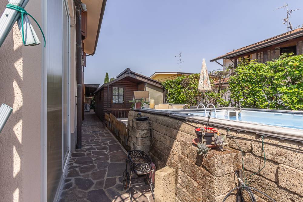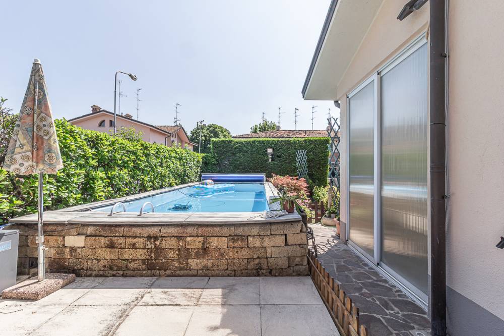 In Centro a Dosso, in tranquilla zona residenziale, graziosa villa singola con finiture di pregio, edificata nel 1998 con ristrutturazione per ampliamento del primo piano nel 2011, caratterizzata da spazi generosi, alto risparmio energetico, giardino, garage doppio e piscina privata. L' abitazione è disposta su 2 livelli, predisposta per eventuale divisione in 2 unità abitative, attualmente composta da ampio e luminoso soggiorno con cucina abitabile, doppi servizi, studio, ripostiglio, 2 camere da letto e portico al piano terra, soggiorno, cucina abitabile, studio, 2 camere da letto, doppi servizi e terrazzo al piano primo. La villa gode di porta blindata, infissi con vetrocamera, zanzariere, impianto di allarme, riscaldamento a pavimento con caldaia a pellet, solare termico, impianto fotovoltaico da 20 KW, cappotto termico. Visibile da subito previo appuntamento.