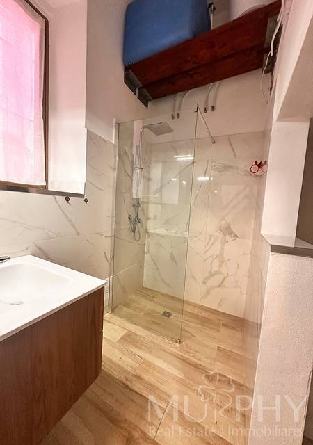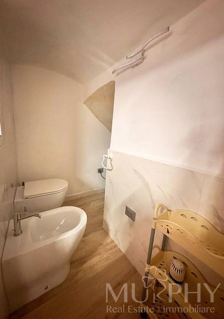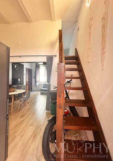 Grazie allaltezza generosa dei soffitti, lambiente ospita un soppalco, accessibile tramite scala fissa, attualmente utilizzato come zona notte con letto matrimoniale , soluzione ideale per ottimizzare lo spazio senza rinunciare al comfort.