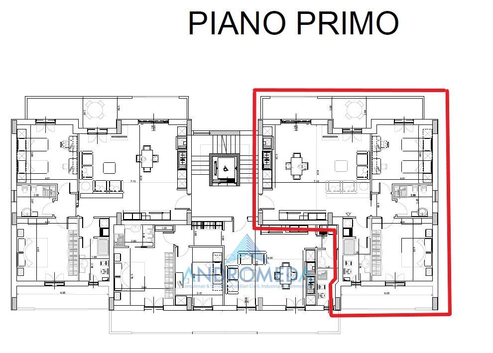 Ogni appartamento è composto da: ampio salone living con cucina a vista, due camere da letto, due bagni, e un ampio ripostiglio/lavanderia.