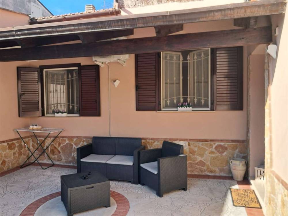 Appartamento, in ottime condizioni e ben tenuto; al piano terra con cortile antistante, lato giorno con ingresso soggiorno, cucina; lato notte 3 camere da letto, un bagno, lavanderia; altro cortiletto retrostante; abitazione sito nel comune di Francolise (CE) nella frazione di Montanaro, alla Via De Renzis n° 4, Piano Terra; della consistenza di 5 vani catastali;