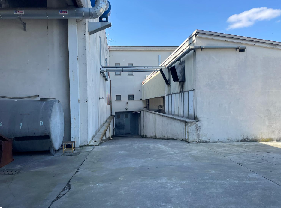 In vece d est vi è un'altra porzione di capannone, separata da quella principale che si sviluppa su due livelli di piano, di cui uno interrato, raggiungibile da una scala interna e dotato di un montacarichi.