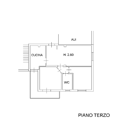 L'immobile si trova al piano terzo di un edificio residenziale e dispone di cucina separata e balcone, area giorno, due camere e bagno.