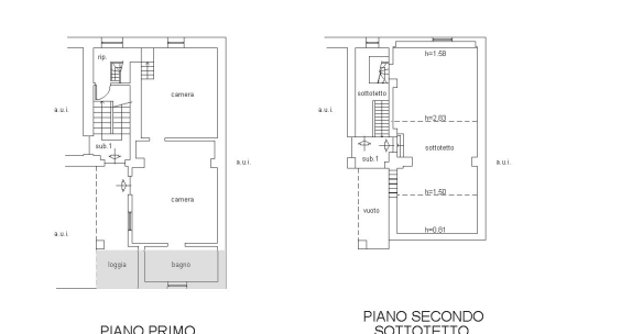 L'abitazione è composta da locali su tre piani: terra, primo piano e piano sottotetto. Dalle scale comuni si accede al piano terra composto da cucina, pranzo, soggiorno, bagno ripostiglio e portico. Il piano primo è composto da due camere, bagno, ripostiglio e loggia; il piano secondo è un sottotetto accessibile dal piano primo dalla scaletta interna e dalle scale comuni.