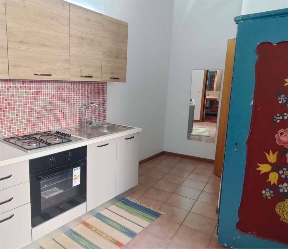 Si accede da una caratteristica corte con arco, nicchie, scala in pietra bianca tipica locale e travi in legno a vista. Il pianerottolo al piano primo ci regala un comodo doppio ingresso che introduce da una parte a: ingresso, cucina abitabile, bagno con doccia e ampia camera da letto matrimoniale con parquet e finestra con vista sulla via; dall'altra entrata troviamo un elegante ingresso in parquet con ampio studio e balcone vista mare, dove è possibile tramite porta collegare i due ambienti al primo piano.