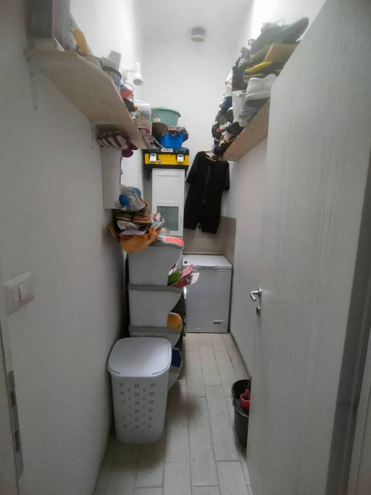 Visto che il soffitto è molto alto, nel corridoio nella lavanderia e nel bagno, sono stati creati dei soppalchi chiusi dove stipare piumoni, cambi stagione ecc.