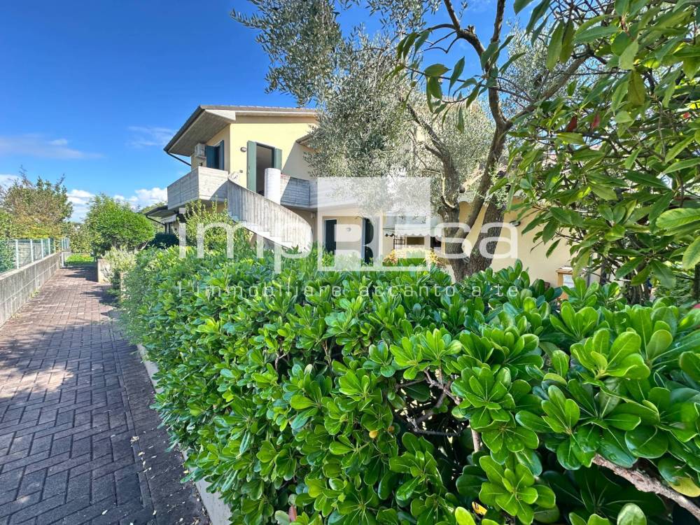 L'appartamento è al piano terra di un residence grazioso di sole 6 unità, lontano dalla strada principale, attorniato dal verde, con esposizione Sud-Ovest.