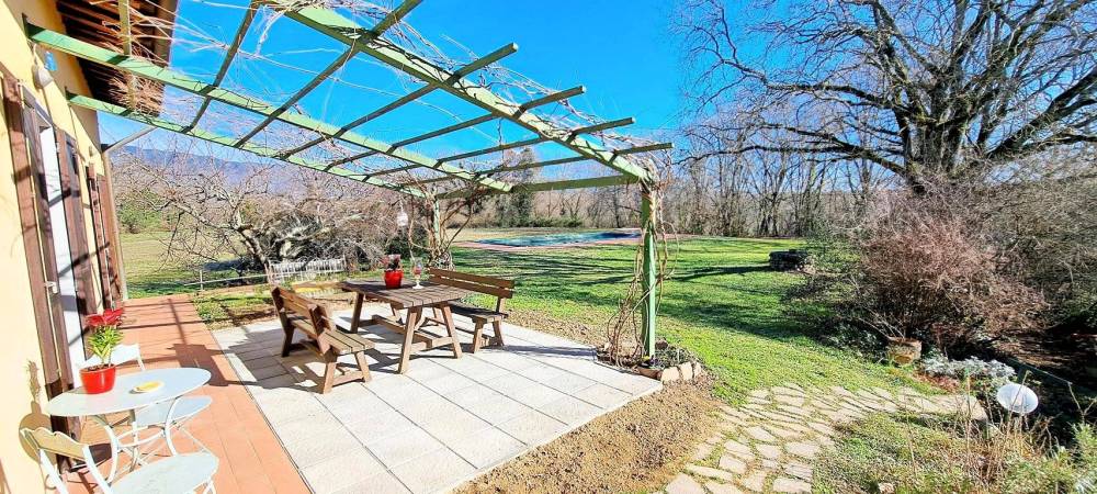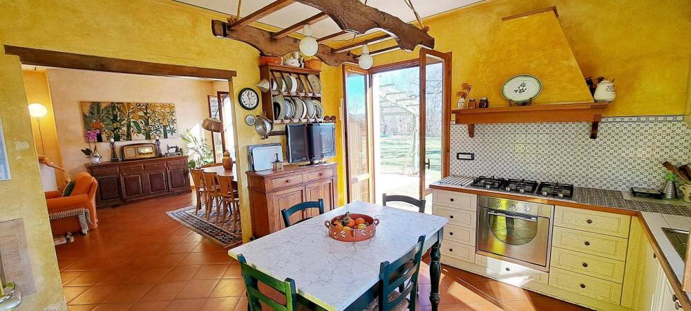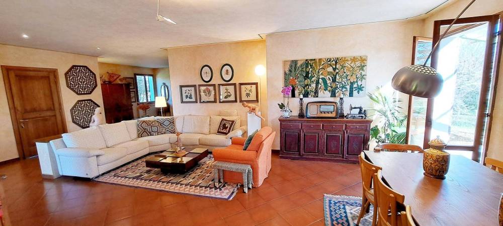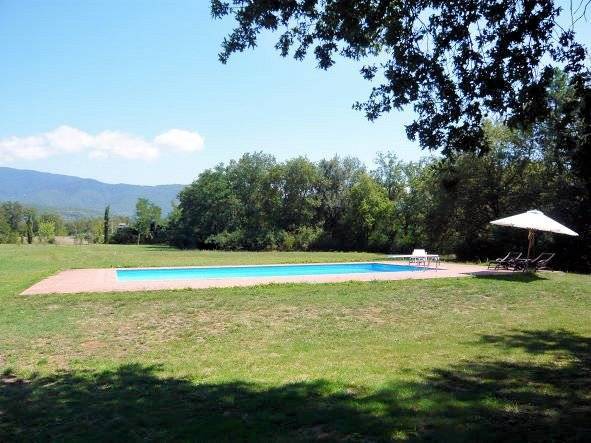 Villa con ampio giardino e piscina sita nel comune di Terranuova Bracciolini.L'immobile, completamente indipendente, è costituito da ampio soggiorno, cucina, studio, camera matrimoniale con cabina armadio, doppi servizi, ripostiglio e ampio locale mansarda al piano primo. Al piano seminterrato cantina e garage di 80 mq. Adiacente alla casa è situato un annesso a destinazione magazzino utilizzato come dependance con angolo cottura, zona notte e bagno. La superficie complessiva è di 526 mq lordi così suddivisi: piano abitazione 158 mq oltre alla loggia di ingresso, piano sottotetto con altezza media 1,80 mt è presente unico ambiente open space (suddivisibile) con una superficie di 163 mq, piano seminterrato con garage e cantina 163 mq, annesso 32 mq. La proprietà è completata da circa 3 ettari di terreno pianeggiante.Ottime condizioni, strada di accesso in buone condizioni, numerosi accessori quali impianto fotovoltaico da 6 kW, pozzo, cancello automatico.
