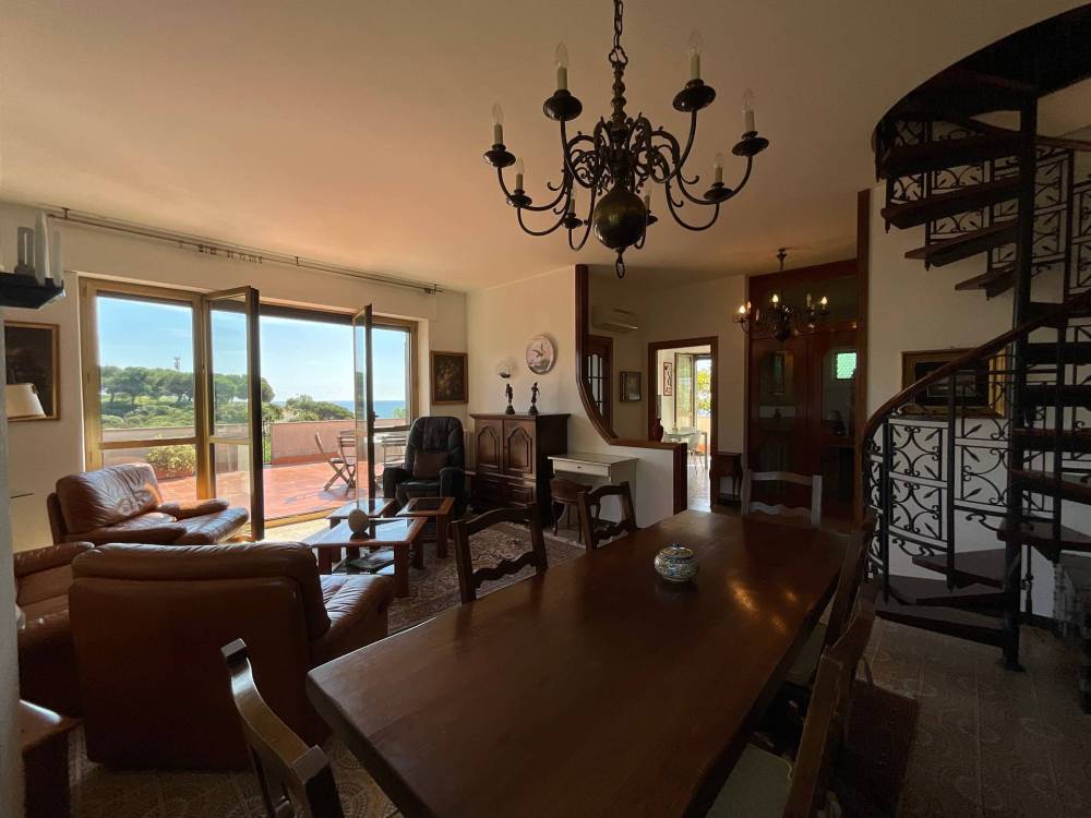 Spotorno zona Pineta, a 600 metri dalle spiagge proponiamo in vendita un grande appartamento bilivello con grande terrazza vista mare, in corso di frazionamento da unità immobiliare più ampia; ubicato in prestigiosa villa con parco privato e posti auto.