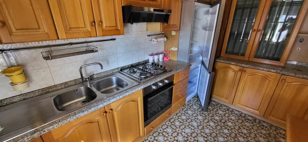 Ingresso, cucina abitabile, due camere, bagno, balconi e posto auto.